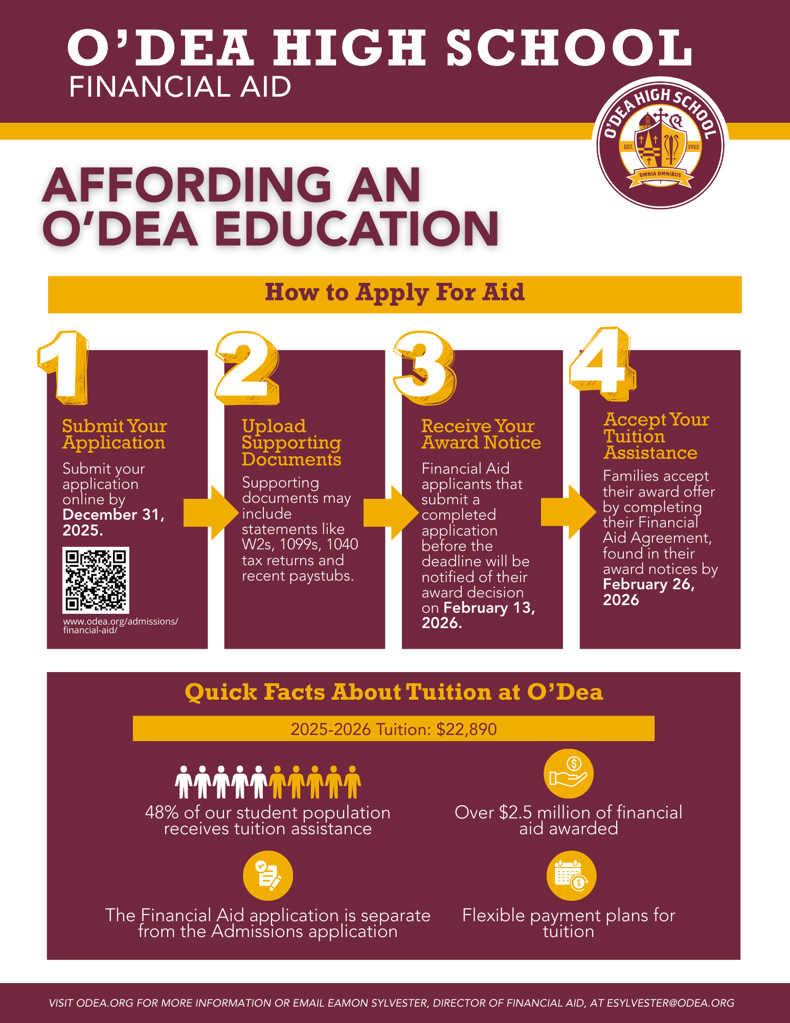 Whether you are a returning family or new to O’Dea, Eamon Sylvester, our Director of Financial Aid, is available to support you. We look forward to working with you throughout your son’s time at O’Dea.
